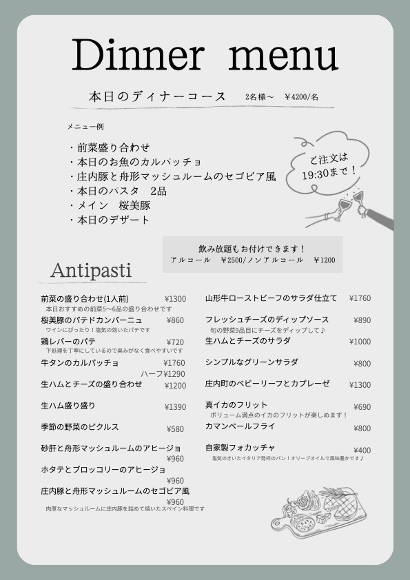気軽にイタリアンをお楽しみください。